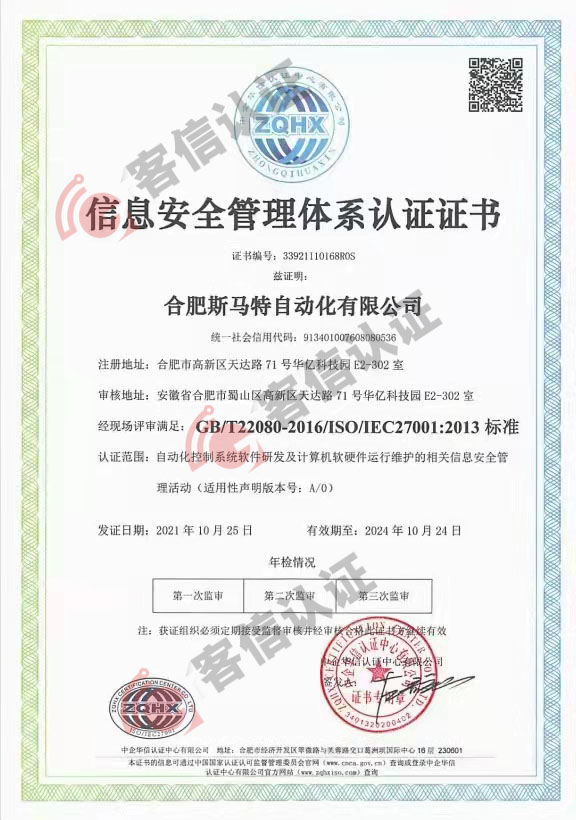 恭喜合肥馬特自動化有限公司獲得ISO20000和ISO27000體系證書