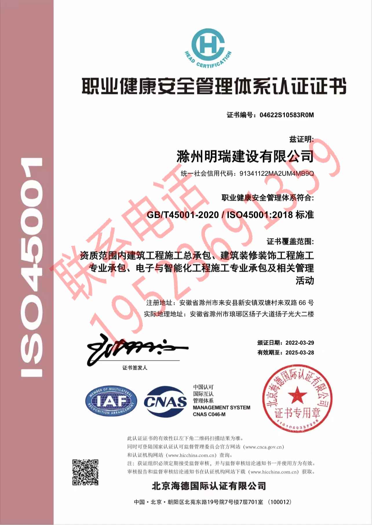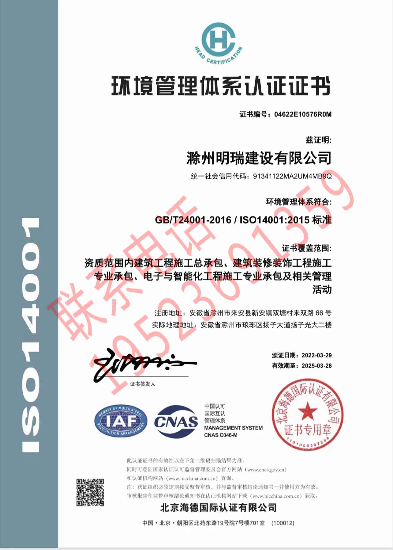 恭喜滁州明瑞建設(shè)有限公司獲得ISO三體系認(rèn)證