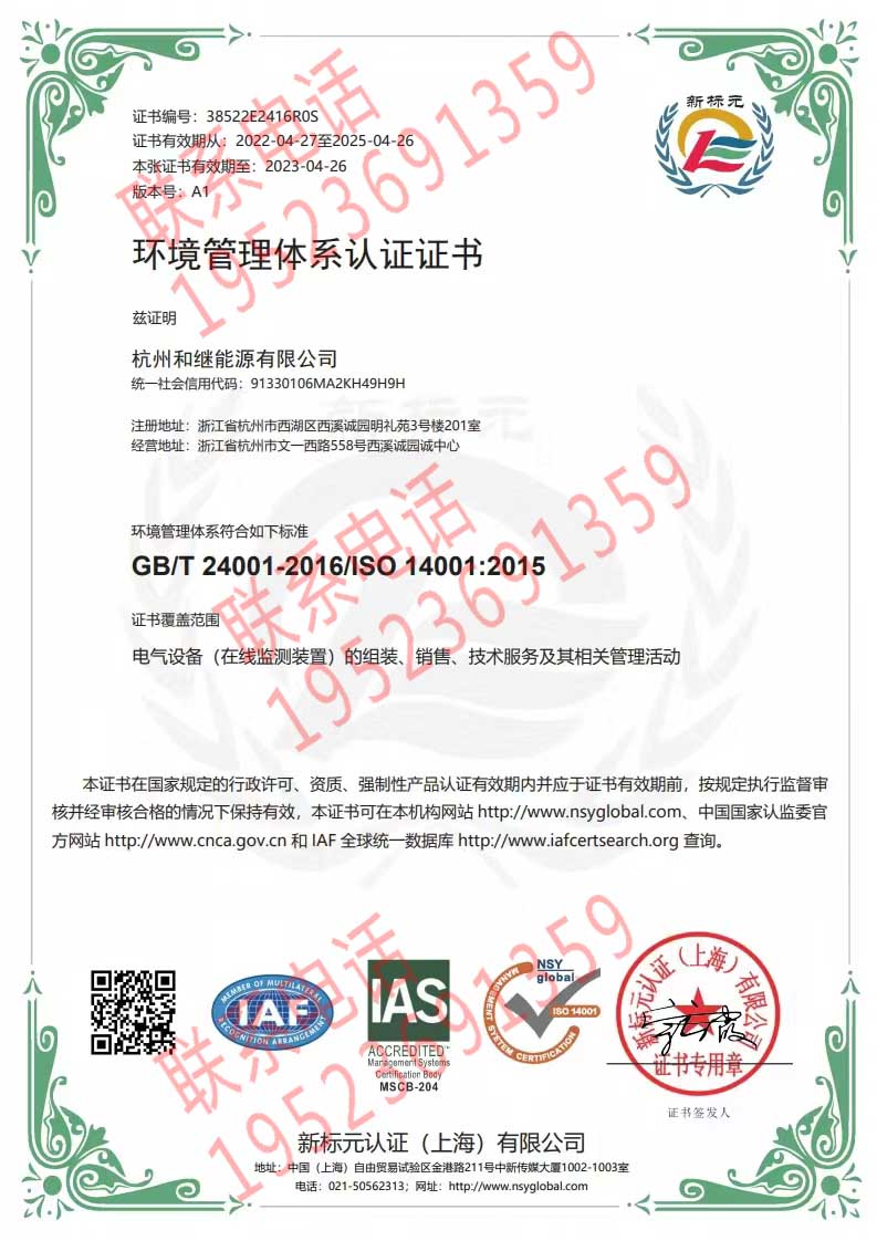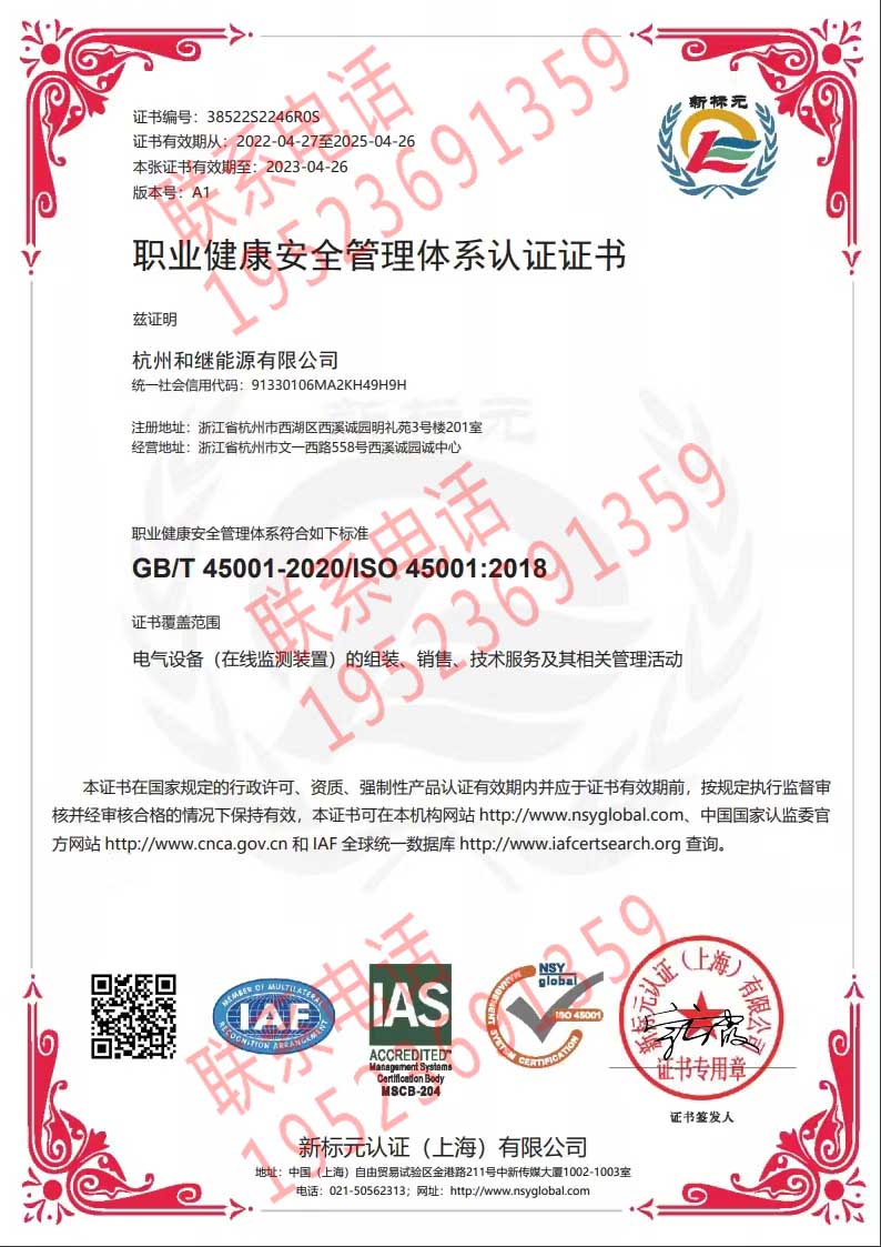 恭喜杭州和繼能源有限公司獲得ISO14000環(huán)境管理體系和ISO4500職業(yè)健康管理體系證書